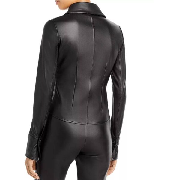 Embrace the versatility of our Black Leather Shacket Womens long sleeves, designed to adapt to your ever-changing style. The snap button cuffs offer a customizable fit, allowing you to effortlessly transition from a laid-back look during the day to a more polished appearance in the evening. Whether you prefer a relaxed, rolled-up sleeve or a sleek, buttoned-down aesthetic, this shacket is your canvas for self-expression. Transform your outfit with a simple snap, showcasing the adaptability that makes this piece a must-have in every fashion-forward woman’s collection.