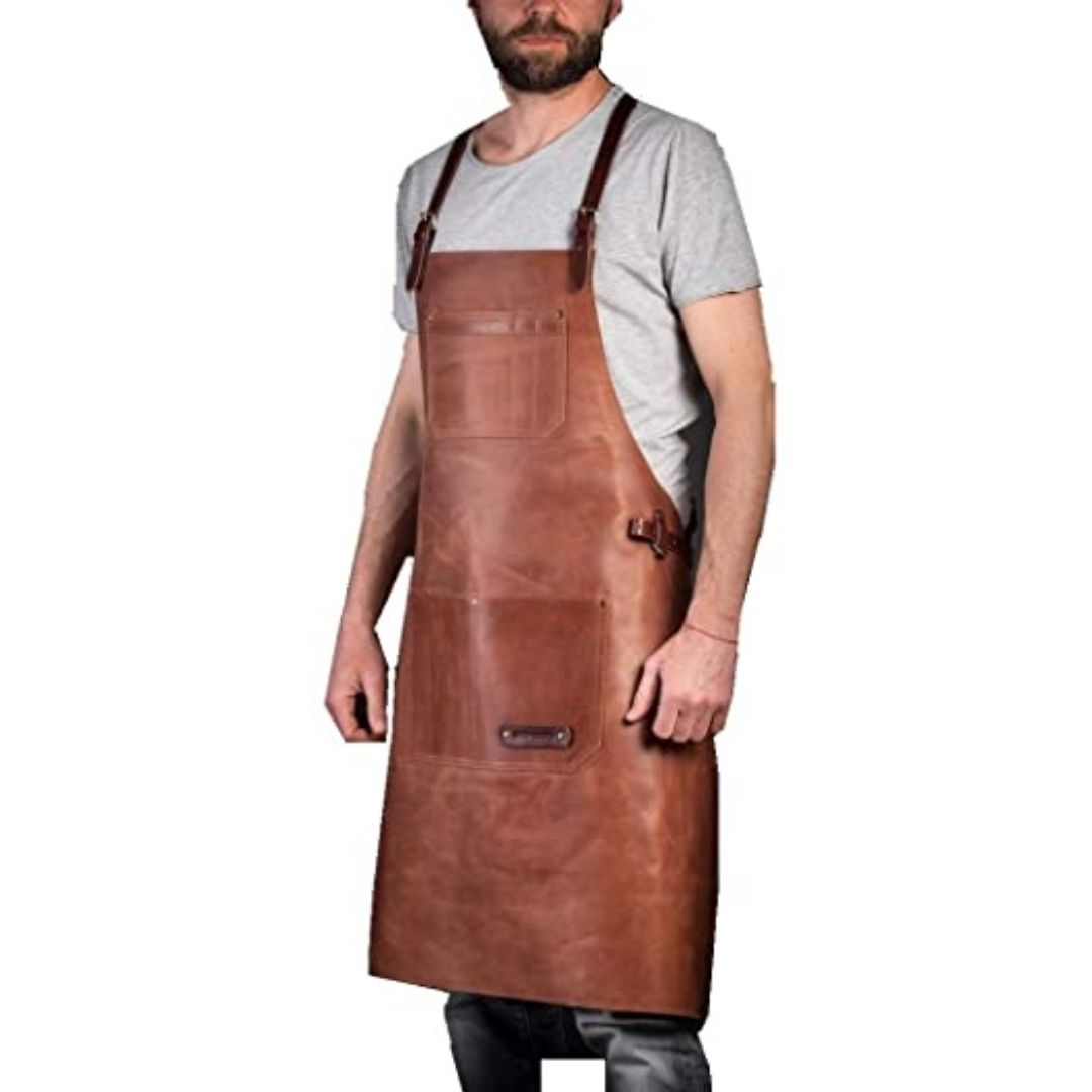 • ✅ HEAT RESISTANT: Superior to linen and cotton, leather is heat-resistant which makes it perfect for grilling, forging, and welding. Our one-piece, full-length Work Apron adds a touch of class to any workplace. Easy to put on and take off, this apron is made of buffalo leather and it will last forever.