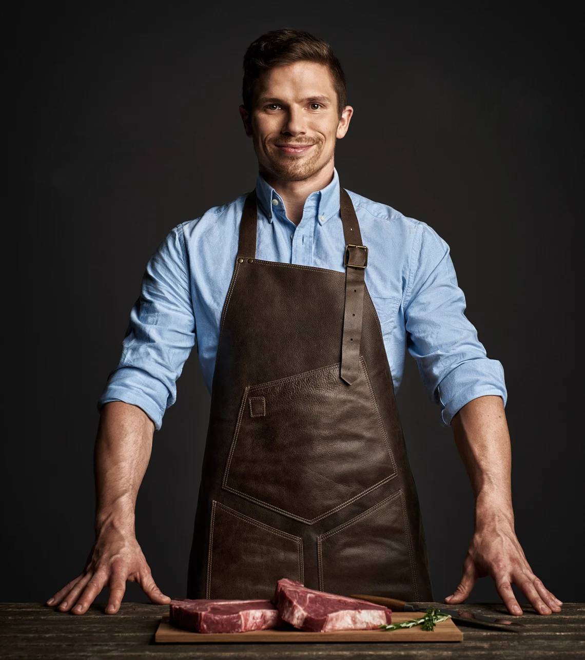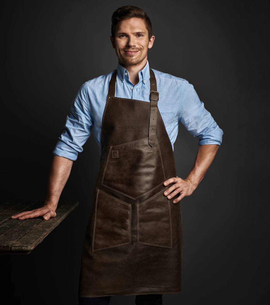 Sauce stains can simply be wiped off after being used, while fat and oil penetrate the leather without leaving any stains. The natural surface treatment not only makes the apron easy to care for and durable, but also brings out the unique characteristics of the leather skin. Our grill apron is water-repellent. It does not get wet, even if you completely immerse it (briefly) in water. The water just rolls off and the lightweight of the apron remains.