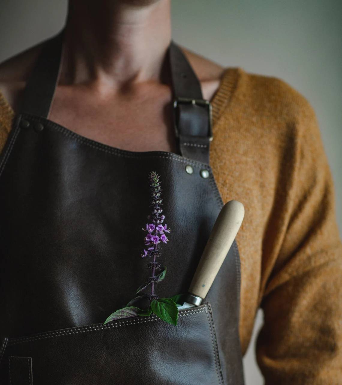 Leather is a renewable raw material, through the use of which we want to underline the naturalness of our aprons. The leather hides are a waste product of food production, which – if unused – are lost. Our leather is 100% free chrome 6. Most of the packaging is made from recycled cardboard.
