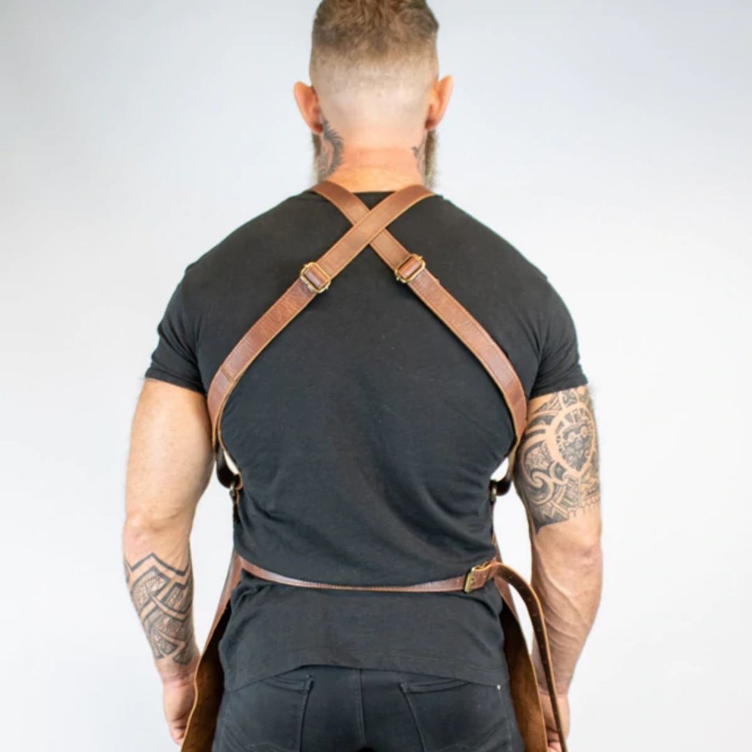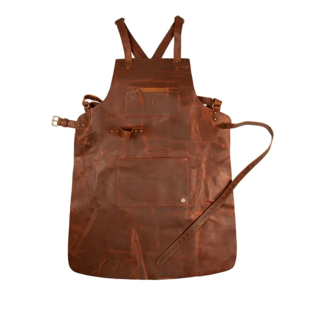 Introducing our brand Cross-back Pocketed Leather Apron in the most delicious Waxy Brown Finish! Designed to be comfortable and reduce pressure on your neck, this practical accessory is perfect for any hobbyist who spends hours at their workbench or kitchen stove. Plus, it’s also great if you love cooking – so no excuse not to use one of these bad boys around here anymore!! You can make your workdays more comfortable with the cross-back design. It will take some weight off, so you don’t have to worry about soreness or fatigue while wearing it! The edges are turned and sewn by secure nylon thread, which guarantees durability if something happens on-site that causes damage during production.