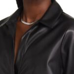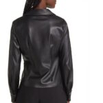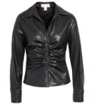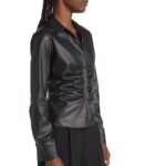 The classic button-up shirt gets remixed in supple Real leather, while ruching frames the placket for a shapely fit.
