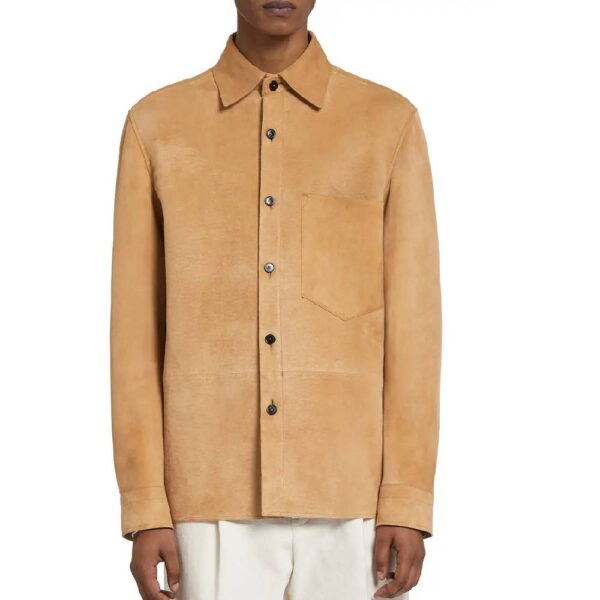 Experience the perfect blend of comfort and style with our Leather Overshirt Mens. The front button closure offers ease and adaptability, allowing you to shift between looks effortlessly. The practicality of the patch pocket on the chest is complemented by long buttoned sleeves, providing a functional aesthetic. Without compromising on comfort, this overshirt is designed for the man who seeks both fashion and functionality in his everyday wear.