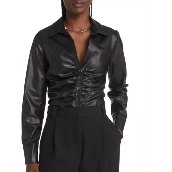 At ThePremiumLeather, we believe that fashion should not come at the expense of our planet’s well-being. Our Leather Wrap Shirt is a testament to our commitment to sustainable and cruelty-free fashion. Crafted from high-quality vegan leather, it provides the luxurious look and feel of traditional leather without harm to animals. By choosing this top, you not only elevate your style but also contribute to a more compassionate and eco-friendly fashion industry. Join us in making a stylish statement with a conscience.