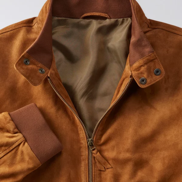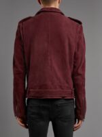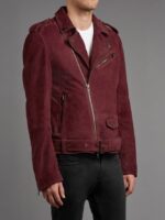 Not only does this maroon suede jacket look great, but it also has multiple functional features. The exposed zips give the jacket a modern edge, while the four pockets offer ample storage space for your essentials. The epaulettes add a touch of military style to the jacket, making it a versatile piece that can be worn differently.