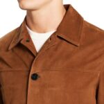 Clean lines and simple detailing streamline a trucker jacket styled from premium lambskin suede that lets you go casual or smart depending on your mood.