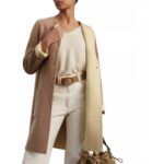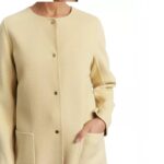 - Gold-tone snap closures at center front