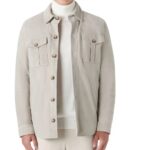 Layer up in a sleek workwear-inspired shirt-jacket elevated by a buttery suede design and equipped with handy pockets.