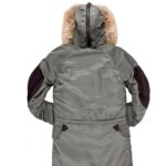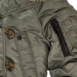 This iconic women’s long parka is perfect for today’s extremely cold climates. Our sage green N3B Long Parka for women is adapted from the iconic 1950’s Air Force Extreme Cold Weather parka, commonly referred to by the USAF as the “Snorkel Parka” because the hood can be zipped all the way up, leaving a small tunnel or “snorkel” for the wearer to look through. Insulated, a modern alternative to goose down and currently used by military suppliers, the lightweight long parka is crafted for warmth. Order this sage green parka with a fur hood from The Premium Leather today!